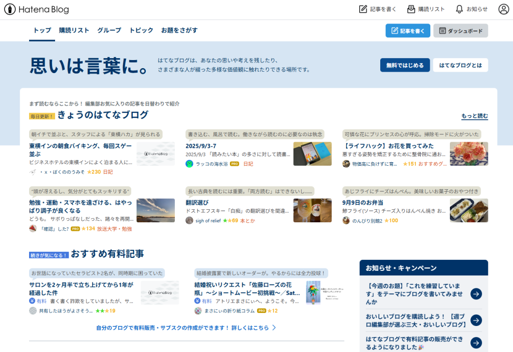 はてなブログの強みの一つは、はてなブックマーク(通称はてブ)や読者になるボタンなど、コミュニティ性の高い仕組みです。記事がブックマークされることで拡散されやすくなり、他ユーザーからの反応も得やすいため、交流や情報発信の場として機能します。