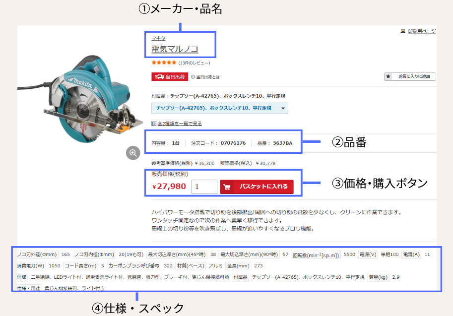 モノタロウの商品ページは、規格一覧ページと品番ごとの詳細ページの2種類があります。