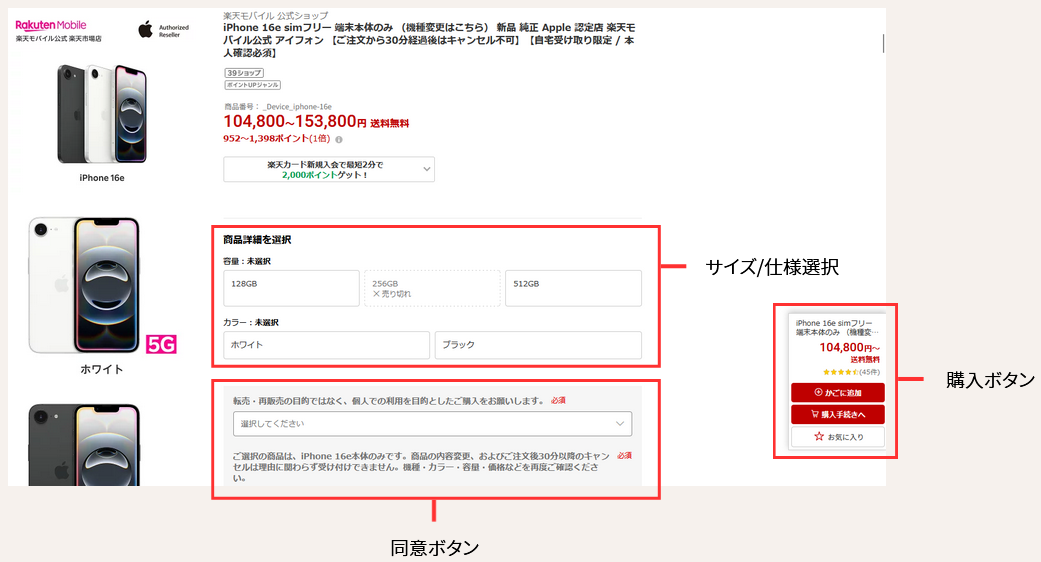 楽天の場合、商品ページのレイアウトはショップごとに大きく異なります。